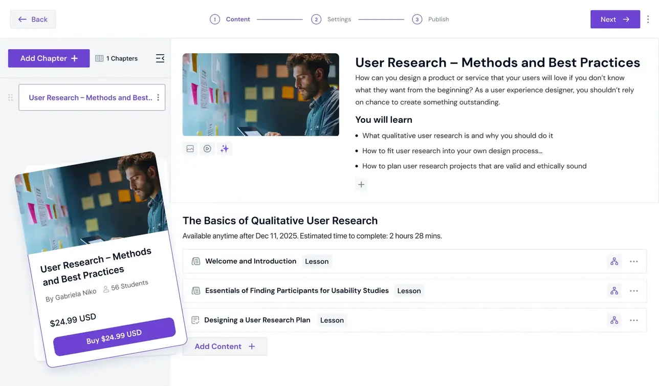 You need a simple, intuitive platform to launch your first course without a steep learning curve or high monthly costs.