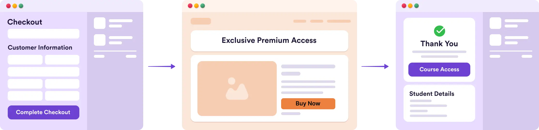 Offer additional courses or memberships immediately after checkout without interrupting the student’s experience.